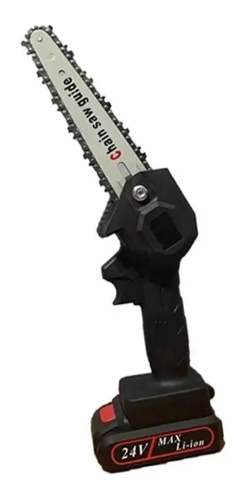 DESCRPCION ES DE 6 PULGADASTRAE DOS BATERIAS DE 98VVIENE ENCAJA NO CON MALETA ES DE COLOR NEGRO Paquete incluido:Dos baterías:1 motosierra eléctrica2 baterías 98V1 cargador (el enchufe según su país)1 x destornillador1 llave inglesaLo más nuevo, de 6 pulgadas Mini sierra eléctrica, motosierra de 18V para árboles frutales, herramientas de jardín para carpintería con batería grande, cortadores de madera de manoCaracterísticas:-Práctico, velocidad rápida, bajo consumo de energía.-Motor de cobre puro, gran potencia, corte rápido, mejora la eficiencia.-Interruptor de buena calidad, ajuste rápido y lento.-Cadena de placa guía de buena calidad, enfriamiento profundo, más resistente al desgaste, corte suave.-Motosierra eléctrica recargable, ligera y portátil, batería de larga duración, sin daños en la corteza.-Cuerpo ligero, ligero y cómodo, diseño ligero, largo tiempo de sujeción y manos no cansadas.-Placa DE CONTROL DE CIRCUITO inteligente, protección contra sobrecargas, para satisfacer sus diferentes necesidades de construcción.-Control con una sola mano: tamaño pequeño, se puede sostener con una sola mano. La mini motosierra pesa aproximadamente 0,7 kg y tiene una longitud total de solo 33cm (13 pulgadas).-Placa guía especial, la bola de acero de tungsteno no necesita ser lubricada, por lo que la máquina reduce la resistencia durante el funcionamiento y reduce el desgaste de la máquina.Especificación:Color: negroModelo 2 juegos de bateríasMaterial: Cadena de metal y aceroVoltaje: 98VLongitud de la placa guía: 6 pulgadasVelocidad de la cadena: 5 M/SAccionamiento eléctrico: fuerte motor magnéticoTamaño de corte: 150mmGran capacidad de diseño de batería: 3000mAh, rango de medición real 2000-3000mAh.NOTA: La cadena no debe instalarse con demasiada fuerza al principio, de lo contrario, el engranaje interno se deslizará y afectará el uso del producto